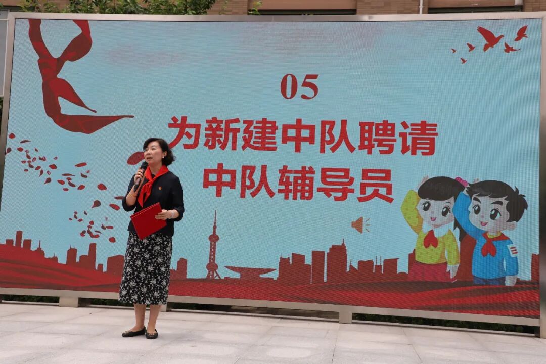 少先队员的成长离不开集体的影响,也离不开中队辅导员的辛勤付出。学校少工委副主任肖燕老师庄重地为新建中队授予队旗。随后,学校少工委主任焦轶萍老师宣读新建中队辅导员聘任决定。在热烈的掌声中,队员代表郑重地为中队辅导员佩戴上红领巾。