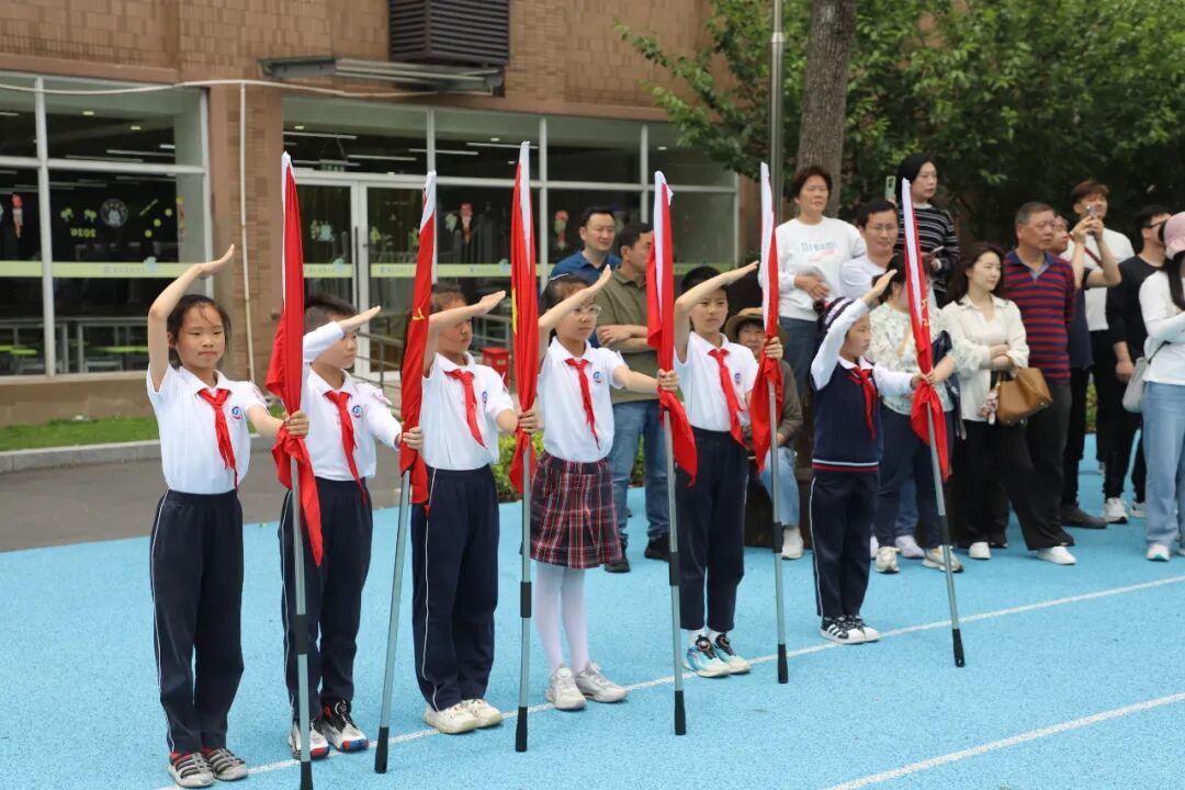 5月27日,阳光明媚,伴随着激昂的出旗曲,旗手们迈着整齐的步伐护送队旗入场,全体师生与家长肃然而立,注视着鲜艳的队旗缓缓展开。熟悉的《中国少年先锋队队歌》在校园上空回荡:“我们是共产主义接班人……”歌声嘹亮,响彻云霄,新队员们的眼神中闪烁着激动与向往。
