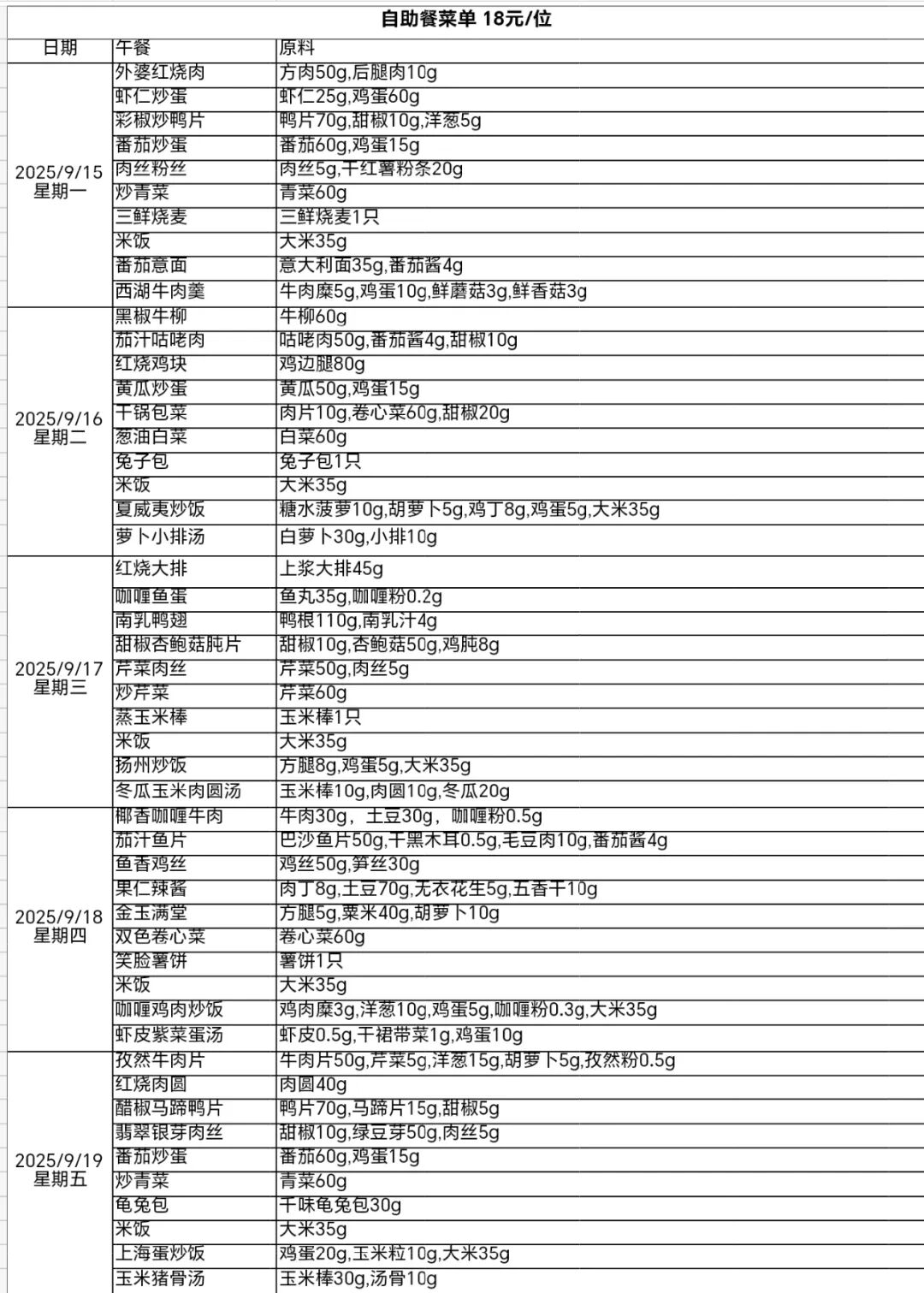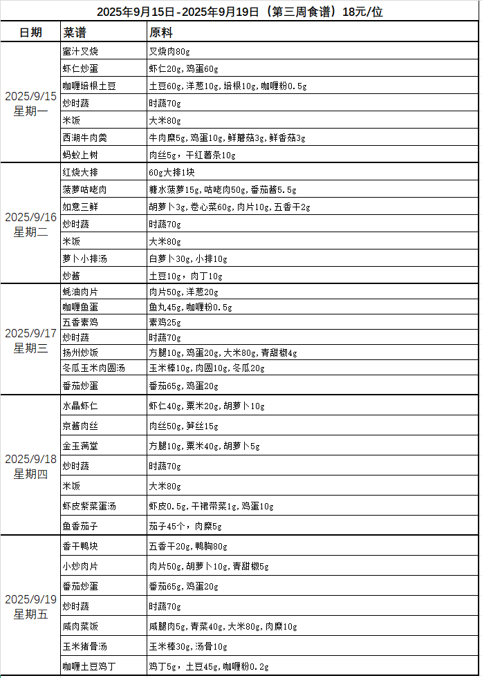 一周菜谱