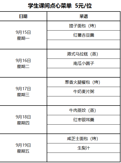 3月3日——3月7日 学生菜谱