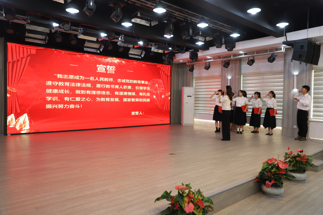 “一辈子做教师,一辈子学做教师。”于漪老师的箴言,深深镌刻在每一位教师心中。教师代表深情朗诵《追光者——致于漪先生与逐光的我们》,字字句句,叩击心灵。随后,在肖燕副书记的带领下,全体教师庄严宣誓,郑重签订《师德师风承诺书》。铿锵誓言,响彻会场,更铭刻于心——做新时代“四有”好老师,我们矢志不渝。
